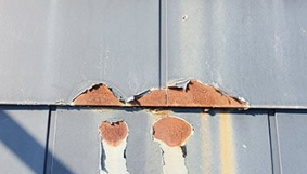 塗装の劣化によるもので雨水を弾く効果が薄れ、次第に塗膜に割れ・剥がれに繋がります。