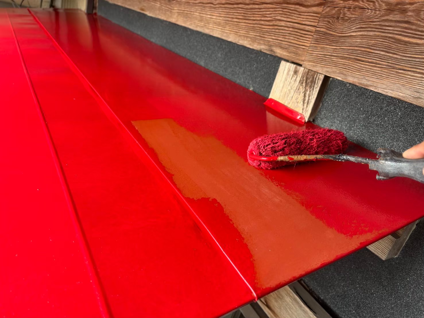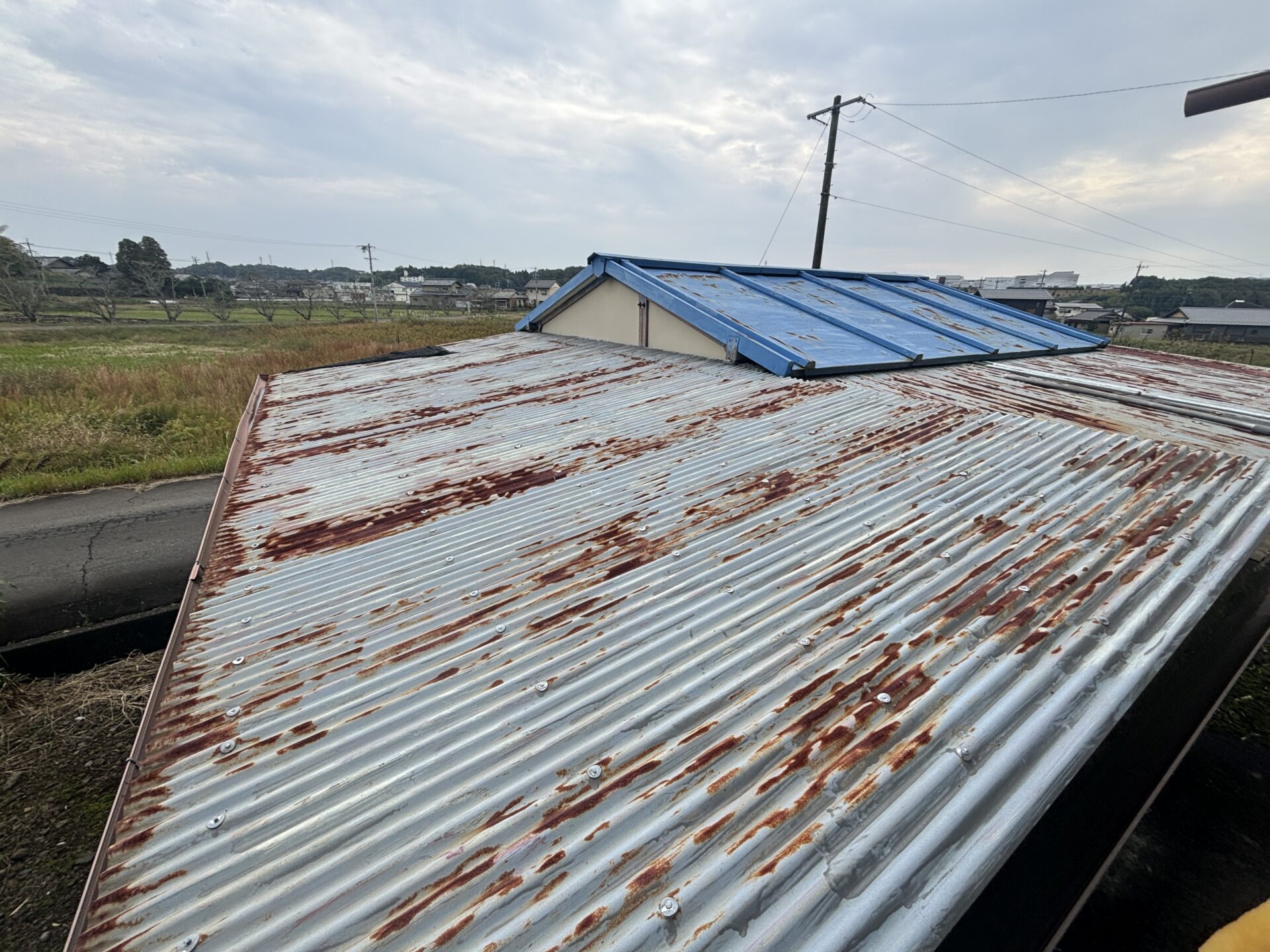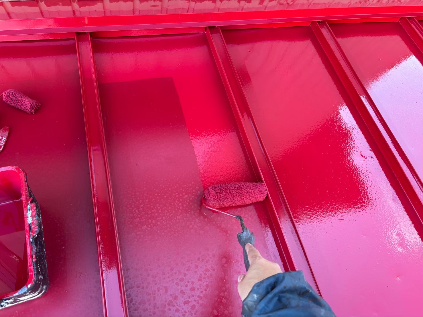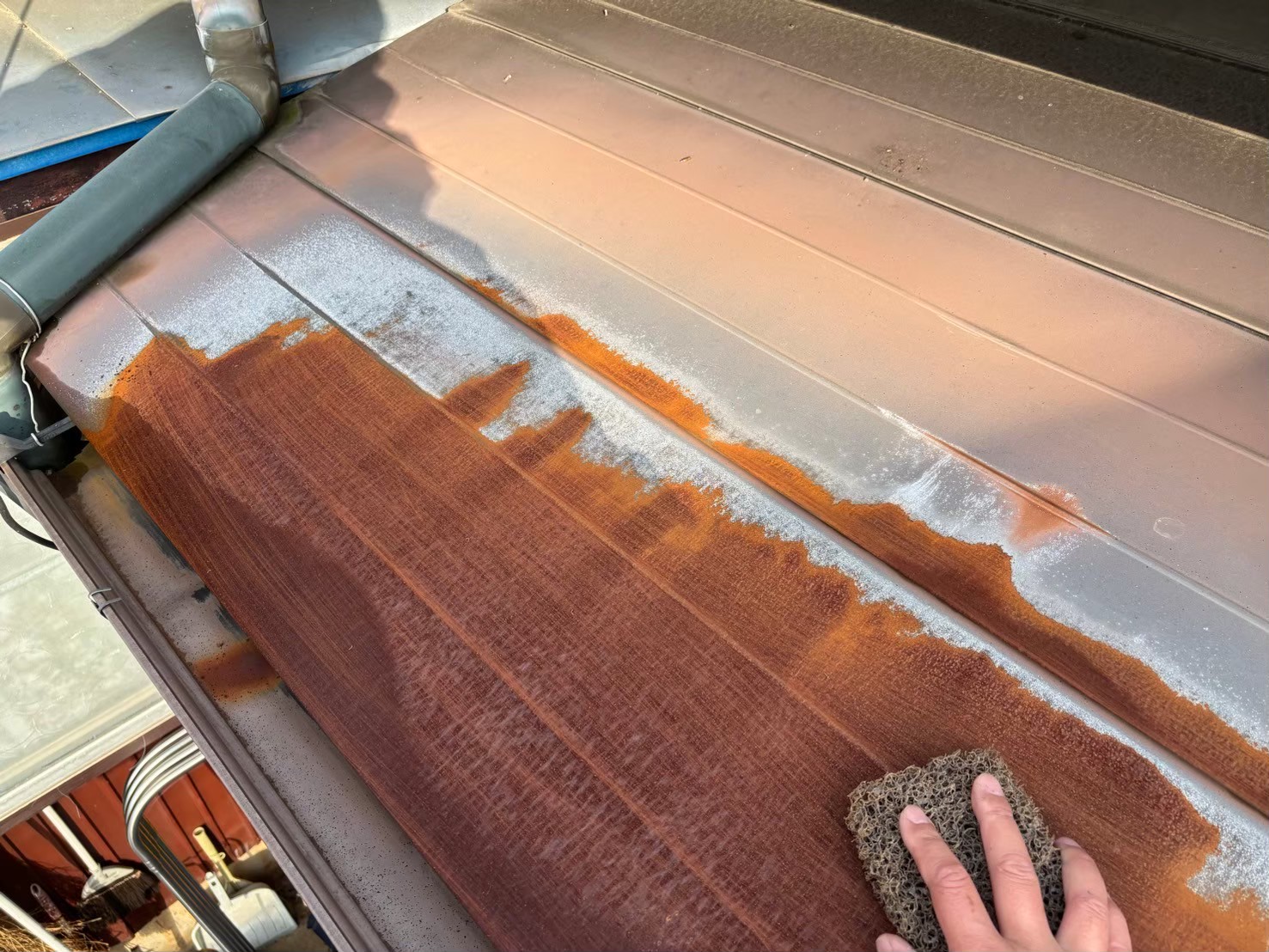 こちらの波型の屋根も錆止めを塗っていきます!
