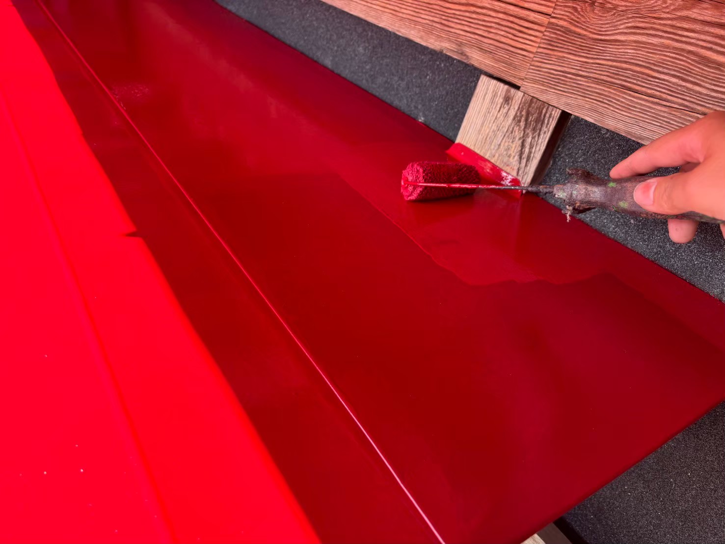 母屋 下屋根 上塗り